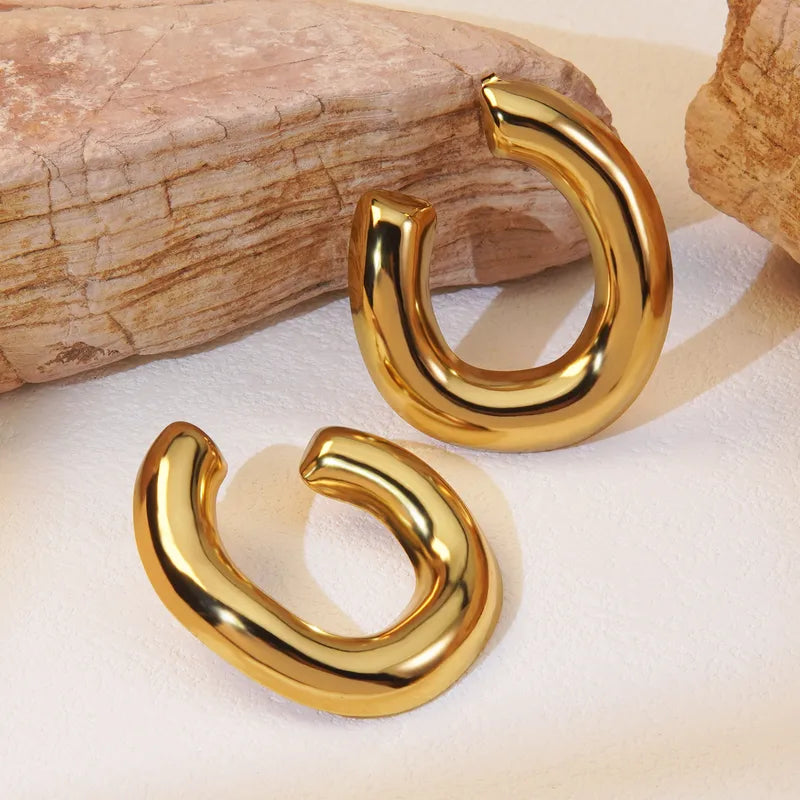 Chunky, sculptural, and effortlessly sleek — the Bold Curve Hoops are your new power pair. Made from stainless steel with a rich gold-tone finish, these hoops bring a modern edge to any look.